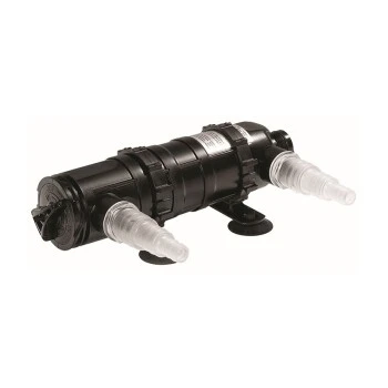 Algenabscheider für Teiche. Verfügbare Modelle: PS 9W, PS 11W, PS 15W, PS 30W und PS 55W. Das Gehäuse der ersten beiden Modelle besteht aus Kunststoff, der mit speziellen Additiven angereichert ist, um ihn vor Schäden durch UV-Strahlen zu schützen. Neben der außergewöhnlichen Haltbarkeit erhöht ein Aluminiumgehäuse die Effizienz des Gerätebetriebs. Die Innenfläche des Gehäuses ist hochglanzpoliert. Dadurch wirkt es wie ein Spiegel. Das UV-Licht, das von den Filament-Sterilisatoren abgegeben wird, führt das Wasser beim Durchgang durch; Als nächstes wird das Licht von der Innenwand des Gehäuses reflektiert und tritt für einen zweiten Sterilisationsdurchgang wieder in das Wasser ein. Auf diese Weise wird die tatsächliche Effizienz des Sterilisators um bis zu 50% erhöht! Alle AQUAEL-Sterilisatoren sind mit sogenannten Tannenbaumverbindern ausgestattet, die für Schläuche mit verschiedenen Durchmessern geeignet sind (bei den Sterilisatoren PS 9 und 11 W kann der Durchmesser von 1/2 bis 1 Zoll variieren; bei den PS-Sterilisatoren) 15, 30 und 55 Sterilisatoren, deren Durchmesser zwischen 3/4 und 1 1/5 Zoll variieren kann, und mit 10-Meter-Netzkabeln für einen bequemen Anschluss an das Stromnetz. Die Geräte können entweder vollständig in den Teich eingetaucht oder außerhalb des Wassers betrieben werden. Die Pumpe AQUAJET PFN 1000 eignet sich ideal für die Speisung der Sterilisatoren PS 9W und PS 11W. Mit der Pumpe AQUAJET PFN 1500 können die Sterilisatoren PS 15-55 W gespeist werden.