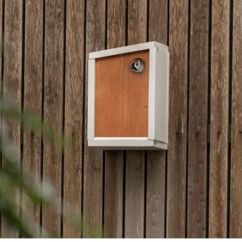 Der Nistkasten ist aus Massivholz und aus nachhaltigem Anbau (FSC) gefertigt. Das Dach ist mit umweltfreundlicher Farbe auf Wasserbasis lackiert.