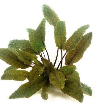 Cryptocoryne wendtii BRAUN, eine sehr beliebte Vordergrundpflanze mit leicht gewellten Blatträndern; bei guter Beleuchtung werden ihre Blätter tief dunkelbraun.
