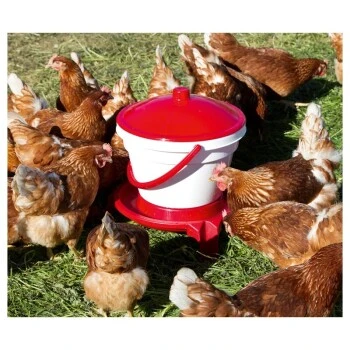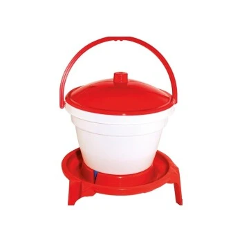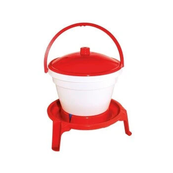 Der Geflügel-Tränkeeimer aus lebensmittelechtem hochwertigem Kunststoff wird mit einem Tragegriff zum leichten Transport geliefert. Durch die automatische Wasserzufuhr können die Hühner zu jeder Zeit trinken.