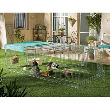 Die Gitterabdeckung ist aufklappbar und bewahrt Ihre kleinen Nager vor ungebetenen Gästen wie Raubvögeln oder Katzen und verhindert gleichzeitig das Herausspringen der Kleintiere.