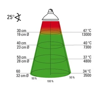Der Lucky Reptile Halogen Sun Strahler bringt mehr Licht und Wärmestrahlung auf den Punkt, erhöht aber die Umgebungstemperatur in geringerem Maße als herkömmliche Reptilien-Spotstrahler gleicher Wattstärke. Dadurch lässt sich ein Temperaturgefälle im Terrarium noch besser steuern und es können größere Abstände des Strahlers zum Tier realisiert werden.