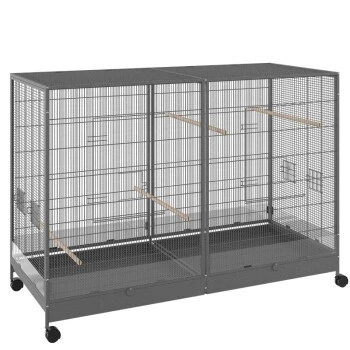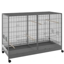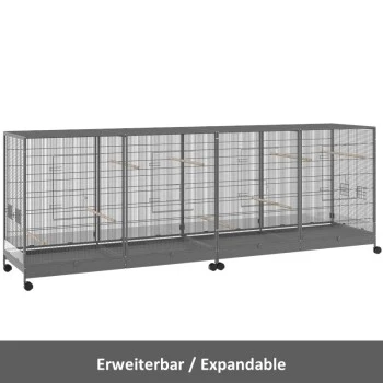- Voliere auf 4 Rollen (2 mit Feststellbremse) für leichtes Verschieben und Fixieren